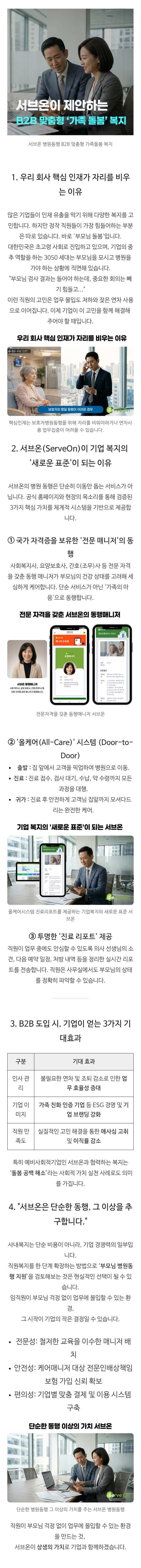 핵심 인재의 연차, 부모님 병원동행 때문이라면.. 서브온이 제안하는 B2B 맞춤형 가족 돌봄 복지